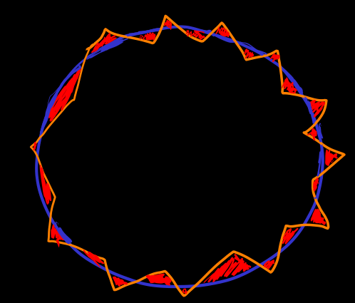 - 无限楼梯逼近三角形斜边 or 圆 ( ) or 只要大幅法向振荡,